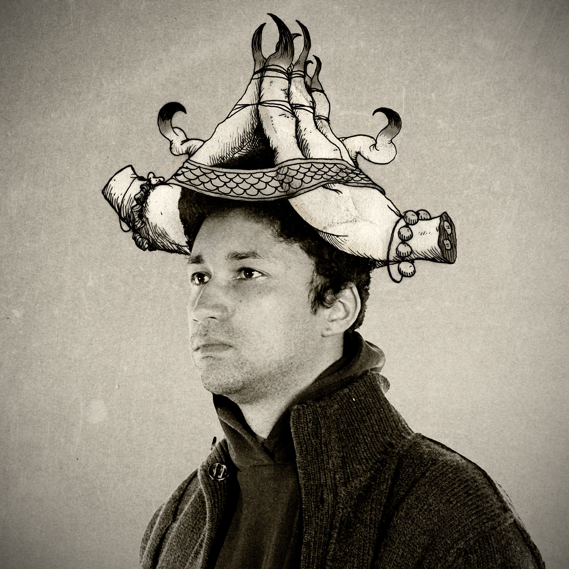 by the group S/S/S, a collaboration between the artists Sufjan Stevens, Son Lux, and Serengeti. I used their theme of "beak & claw" as inspiration for the illustrated headpieces they are wearing.